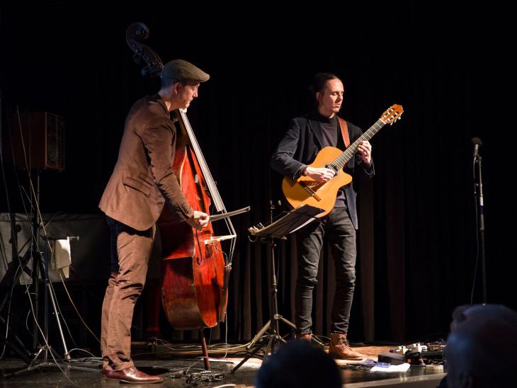 Er wollte seine Musik von Anfang gerne mit einem Kontrabassisten spielen, der die Stimmung der Stücke versteht und der seinen finnischen Humor teilt. In Florian Dohrmann hat Aleksi einen perfekten Duo-Part gefunden. Der studierte Jazz-Kontrabassist wurde u.a. mit dem David Orlowsky Trio bereits zweimal mit dem Echo „Klassik ohne Grenzen“ ausgezeichnet. Dohrmann ist bekannt als ein eleganter Stilwanderer am Kontrabass.